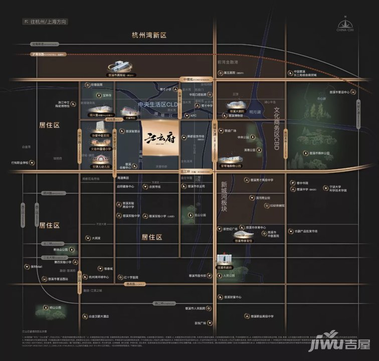 坐落在慈溪中央生活区CLD,由武汉城建、融创中国、中国金茂三大房企联手操刀的江山云望,就是典型的例子。