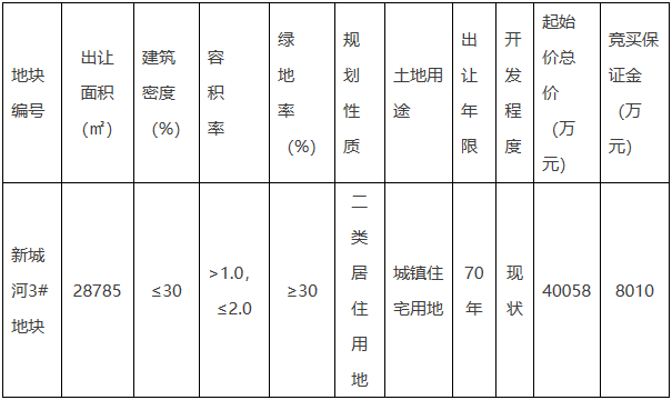 该地块编号为慈自然资规告〔2020〕149号,出让面积28785㎡,容积率1.0-2.0,建筑面积57570㎡,起价40058万元,起始楼面价6958元/㎡,竞买保证金为8010万元。